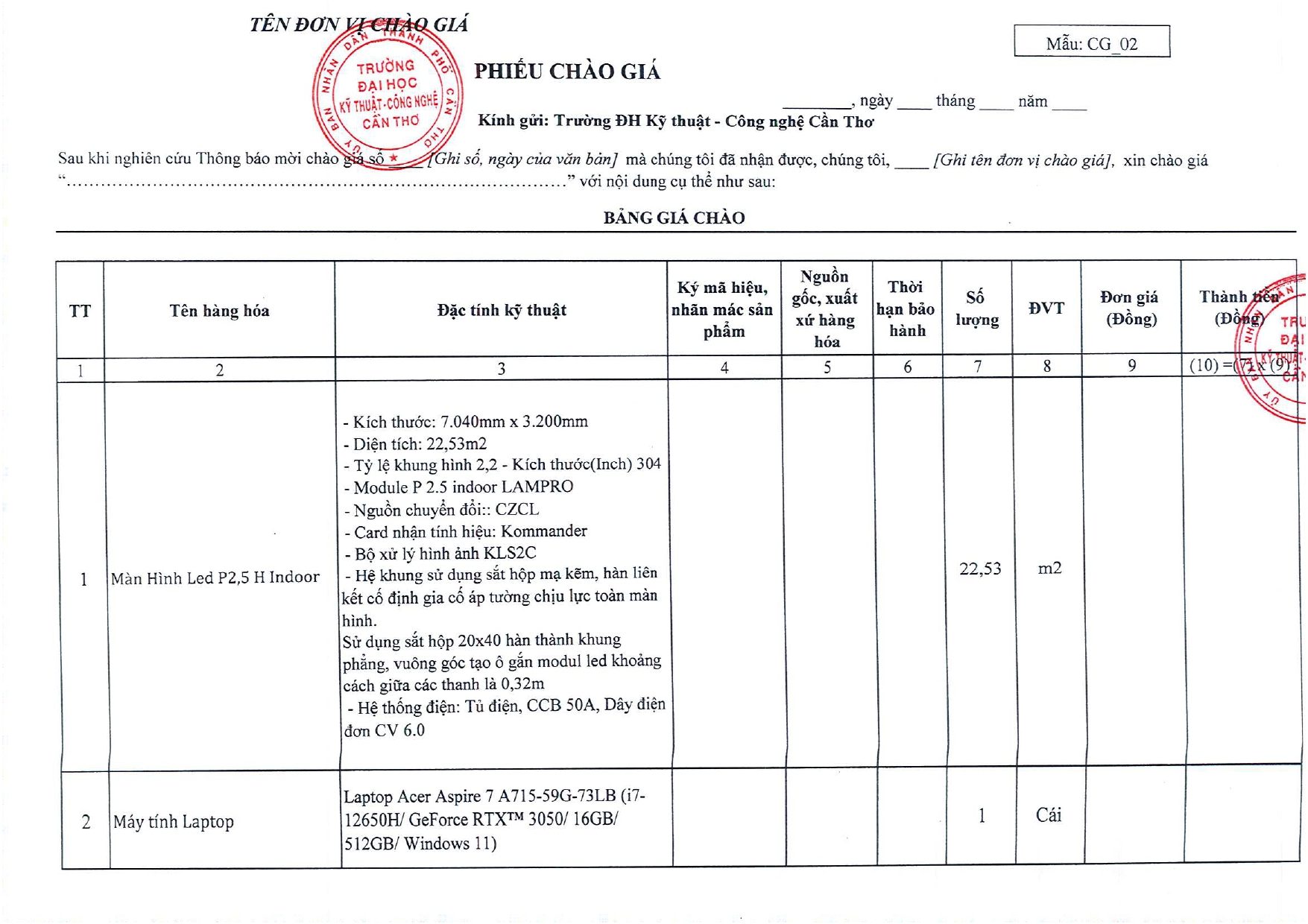 TB 588 Chào giá mua sắm màn hình LED đèn chiếu sáng sân khấu và laptop phục vụ tại Hội trường A_page-0002 Đăng vào 23 Tháng Mười Hai, 2025Tác giả Nguyễn Minh Thiệp 0